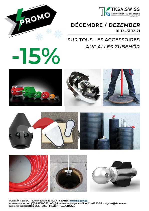 En décembre, profitez d’une super promotion de -15% sur tous les accessoires ! / Profitieren Sie im Dezember von unserem super Angebot von -15% auf unser ganzes Zubehörsortiment ! tksa promotion canalisation aktion kanalreinigung DE