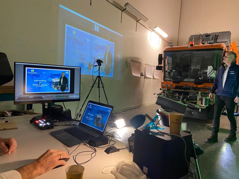 Launch online training platform Times have changed and we need to find other ways to meet the needs of our customers. This is why our Academy has created a whole new online environment to train and inform technicians, drivers and sales representatives. RAVO SPA (Italy) was the first to receive an online certification training on the new electric RAVO 5 eSeries. Equiped with high tech cameras and a Chroma Key green screen the launch of this new platform was a huge success. Jeroen Heutenik, Manager FES Academy: “Due to COVID-19 and to ensure the safety of our customers we needed to find new ways of training. We set up a complete studio in a matter of weeks. A great team effort as this way of working was totally new to us.” Like to know more about our training facilities? Get in touch with Jeroen Heutenik through +31 (0)6 100 088 15. RAVO online covid training eseries certification fayatenvironmentalsolutions