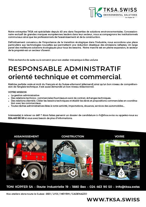 WANTED: Nous sommes à la recherche d’un/une Responsable administratif orienté technique et commercial, bilingue français-allemand, pour notre atelier de Bex. Ce nouveau défi professionnel vous intéresse ? JOIN THE TEAM offredemploi responsableadministratif tksa job
